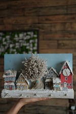 Materials: driftwood, wood, dried flowers, acrylic paints